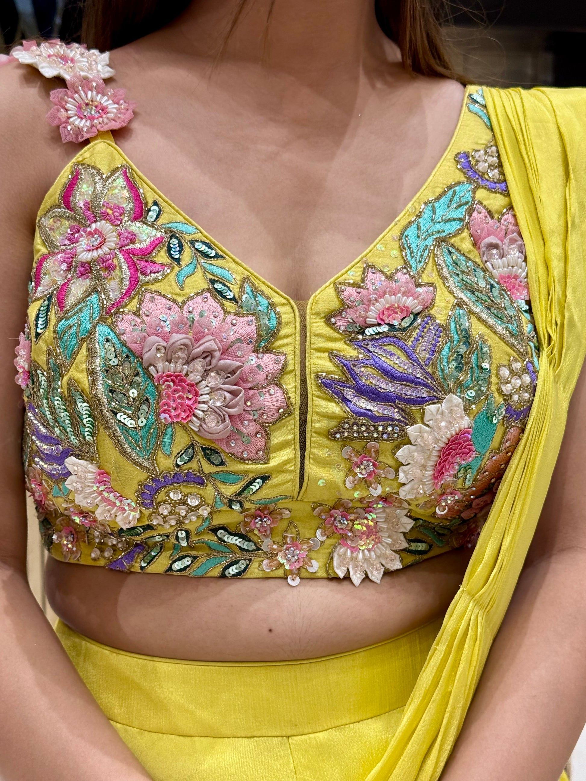 Make a bold yet graceful statement in our exquisite neon drape sari, a perfect blend of modern flair and traditional craftsmanship. Hand-embellished with intricate detailing, this pre-stitched wonder is designed for the woman who embraces color, confidence, and couture. Whether it’s a cocktail, sangeet, or festive soirée, this luminous ensemble ensures you shine at every step.